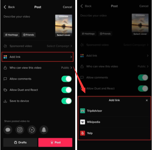 目前 TikTok上还只能添加以下3种方式进行引流: